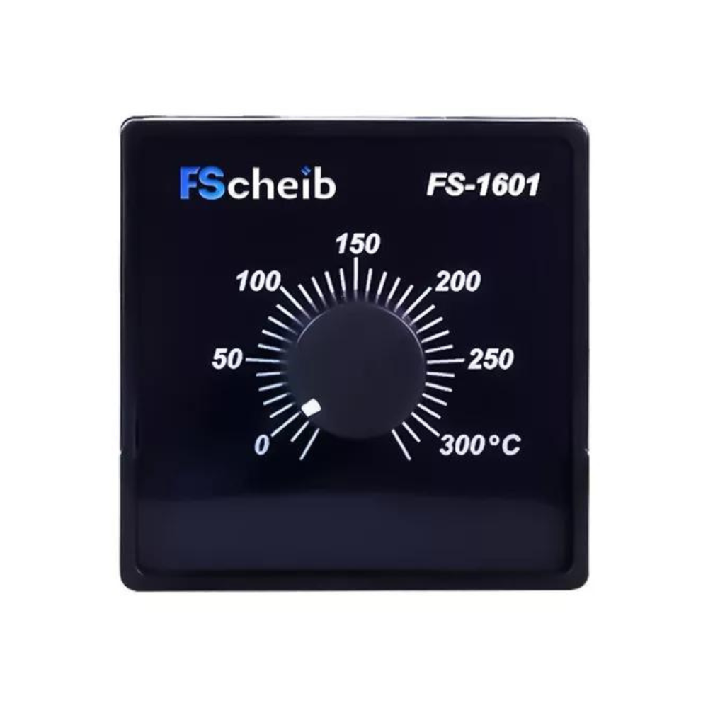 O CONTROLADOR DE TEMPERATURA ANALÓGICO FS-1601 É UM EQUIPAMENTO COM ENTRADA PARA SENSOR TERMOPAR J E O MODO DE CONTROLE É PERCENTUAL PARA AQUECIMENTO. EQUIPAMENTO DOTADO DE DUAS FAIXAS DIFERENTES DE CONTROLE: 0/300°c e 50/450°. COM MEMBRANA FRONTAL EM POLICARBONATO, GABINETE EM ABS DE ALTO PADRÃO E AUTO EXTINGUÍVEL. DISPÕE EM SEU FRONTAL DOIS LEDS INDICADORES, UM DELES INDICANDO A ALIMENTAÇÃO DO EQUIPAMENTO, E O SEGUNDO O STATUS DA SAÍDA, JUNTAMENTE COM KNOB PARA AJUSTAR A TEMPERATURA DESEJADA PARA O PROCESSO.