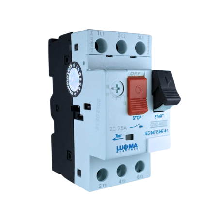 OS DISJUNTORES MOTOR LUKMA SÃO UTILIZADOS, PRINCIPALMENTE, PARA PROTEÇÃO DE MOTORES AC50/60Hz EM SOBRECARGAS E CURTO-CIRCUITOS, ATÉ TENSÕES DE 660V E AJUSTE DE 0,1-80A, EM CIRCUITOS DE PARTIDA A PLENA CARGA EM REGIME AC3. SÃO TAMBÉM UTILIZADOS PARA PROTEÇÃO DE SOBRECARGAS E CURTOS CIRCUITOS EM REDES DE DISTRIBUIÇÃO!